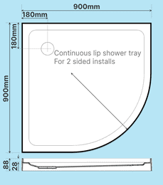 Dimensions of our 900 x 900 Curved Shower Tray Rear Waste